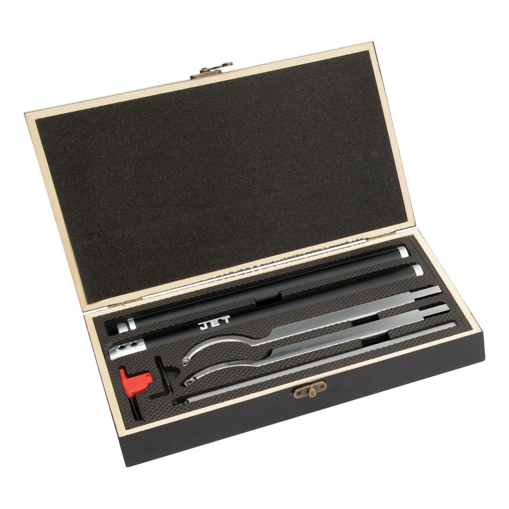 - JET Carbide Turning Tool Set is packed in a custom wood case