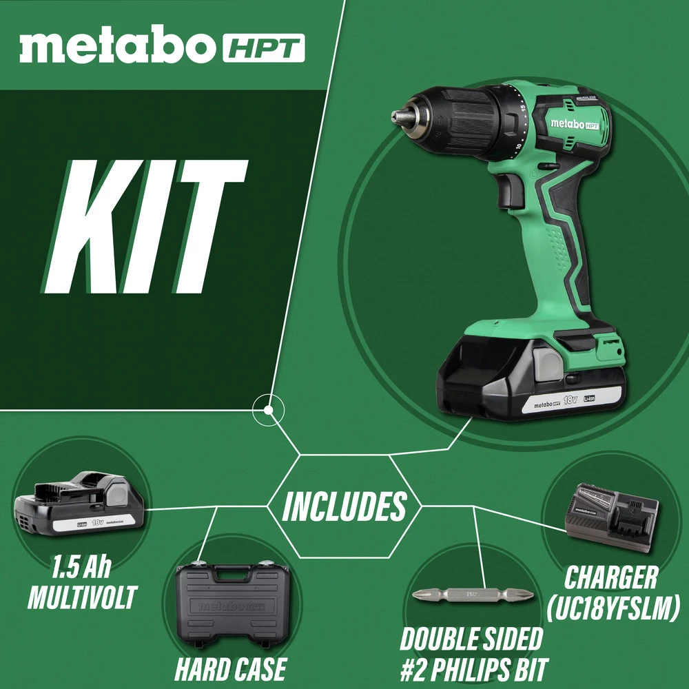 - INCLUDES: Compact Driver Drill, (2) 1.5 Ah Batteries, (1) charger, (1) #2 Phillips Bit, and (1) Carrying Bag
