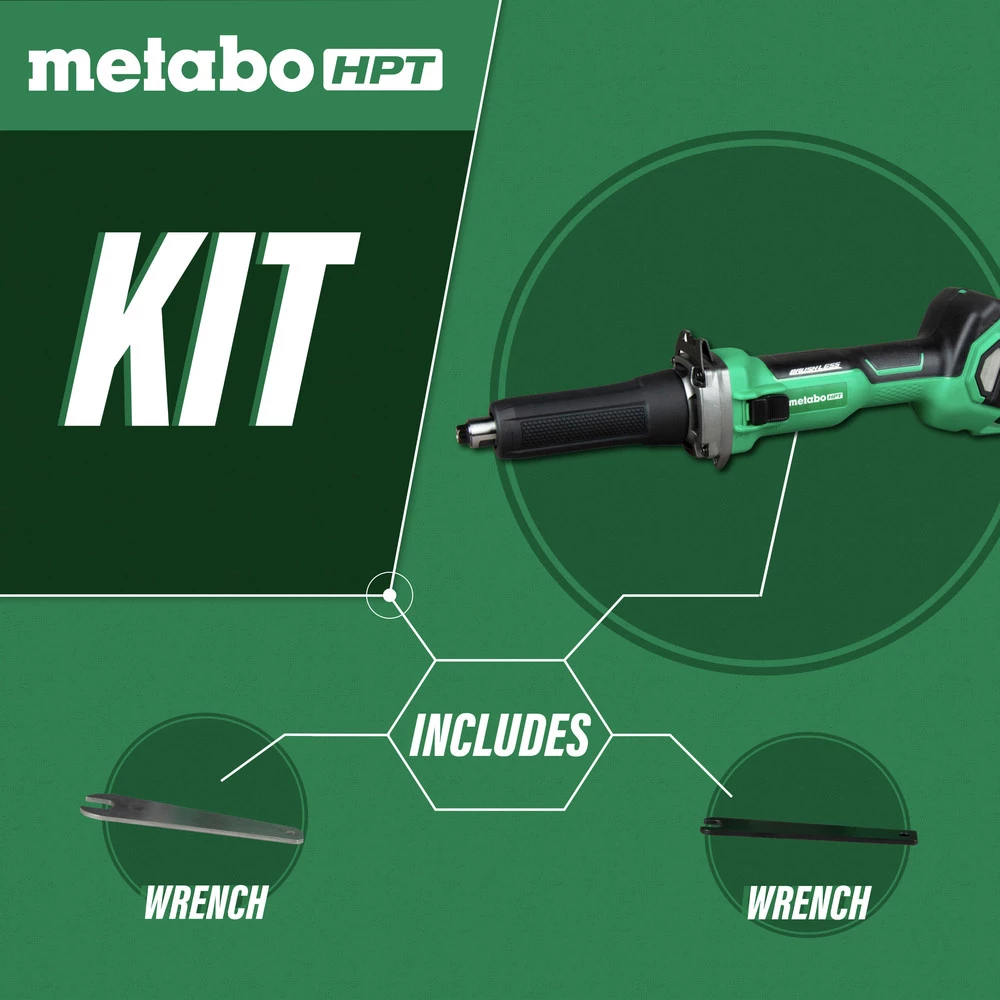 The cordless Die Grinder accepts both 18V batteries and MultiVolt batteries from Metabo HPT for up 8 Amp hours of run time per charge. It is part of the growing MultiVolt System that connects the 18V and 36V line of tools with Metabo HPT’s powerful and flexible MultiVolt battery that powers it all.