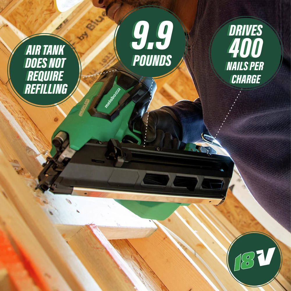 - Unique Air Spring Drive System that uses compressed air to drive each nail resulting in zero ramp up time, increased driving speed, recoil that feels like a pneumatic nailer and quicker response time between drives