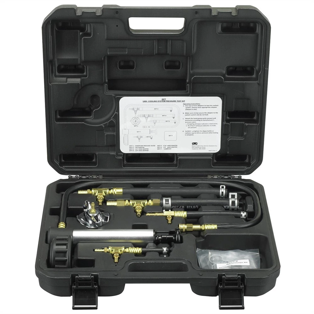 - 4 adapters (1/4 in., 5/16 in., 1/2 in., and 5/8 in.) with Schrader valves to prevent spray