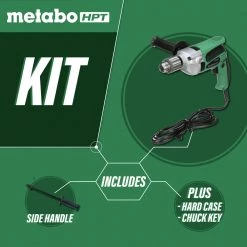 Metabo HPT D10VH2M 7 Amp Variable Speed 3/8 In. Corded Drill Driver With Metal Keyless Chuck